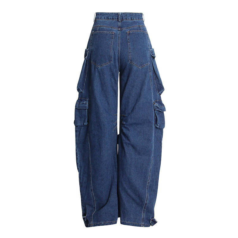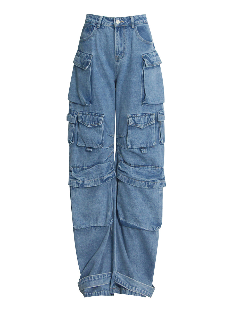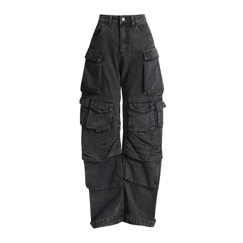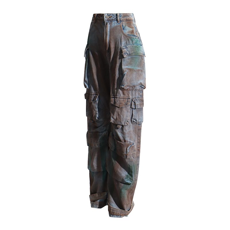 Fashionable Cowhide Work Pants with Multi-pocket and Loose Fit for Autumn
