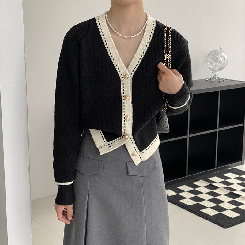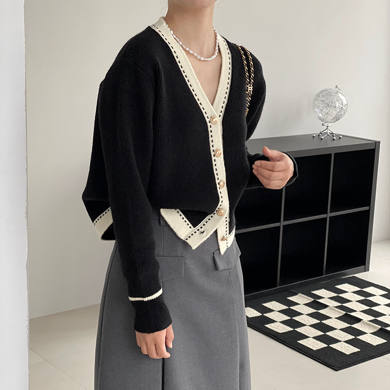 Women's Oversize V-Neck Knit Cardigan with 50%-70% Polyester Blend and Korean Style