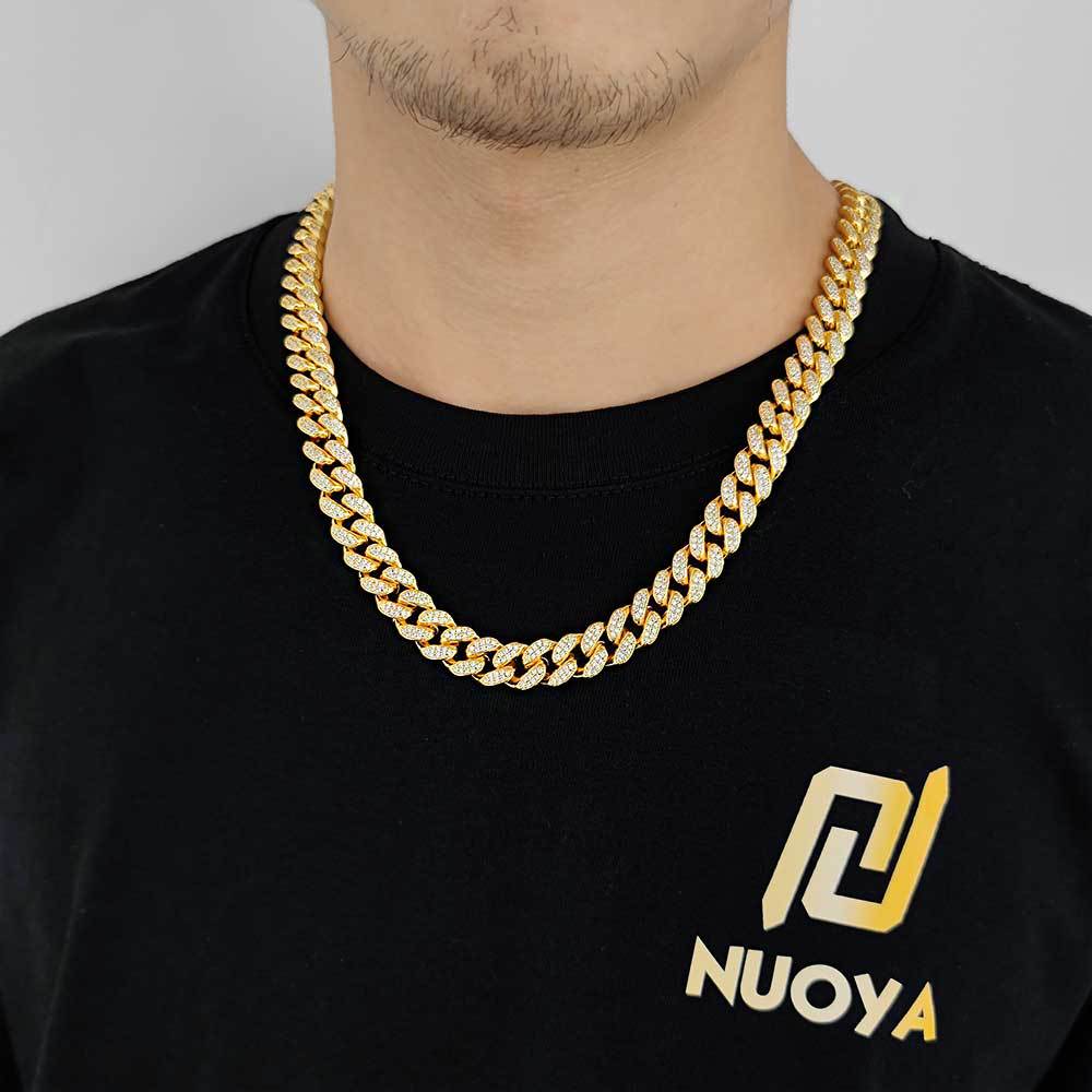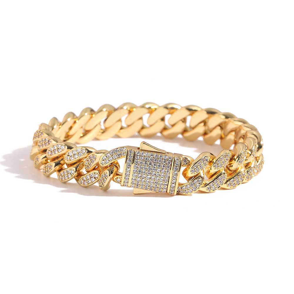 12mm Cuban Chain Necklace with Spring Buckle and Zircon Stones for Men