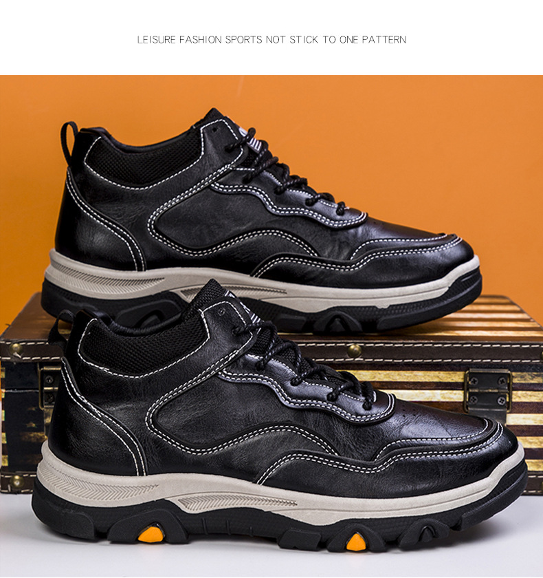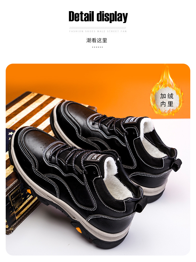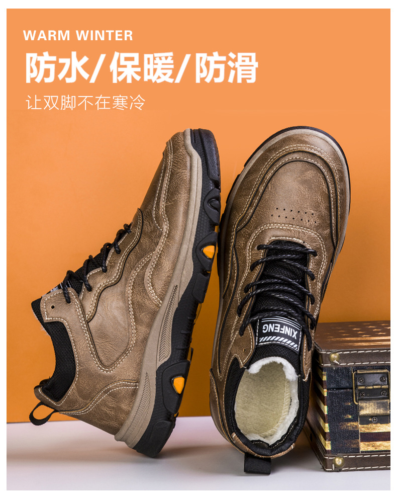 Men's British Style Work Shoes Outdoor Hiking Shoes with Plus Velvet Warm for Autumn and Winter