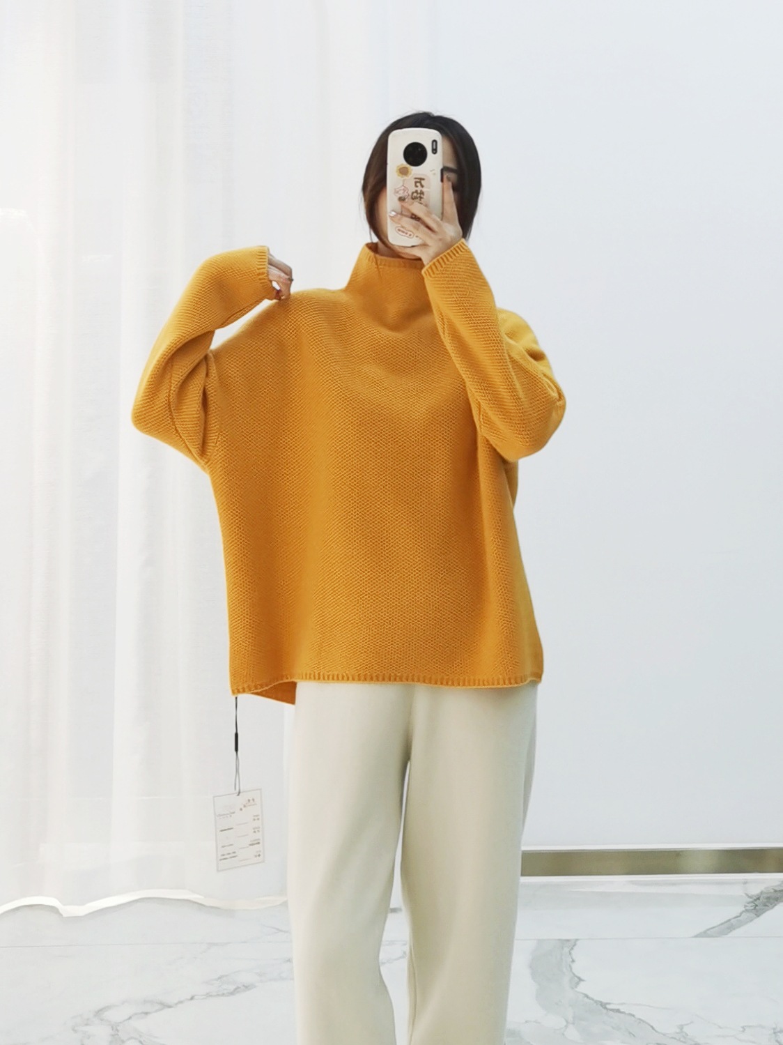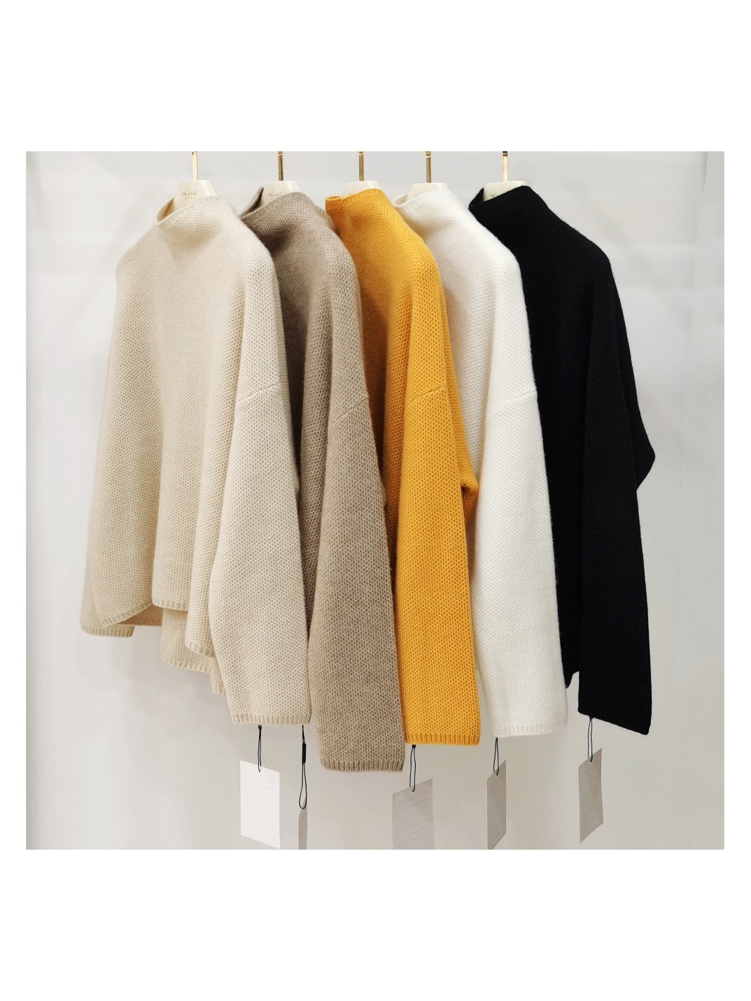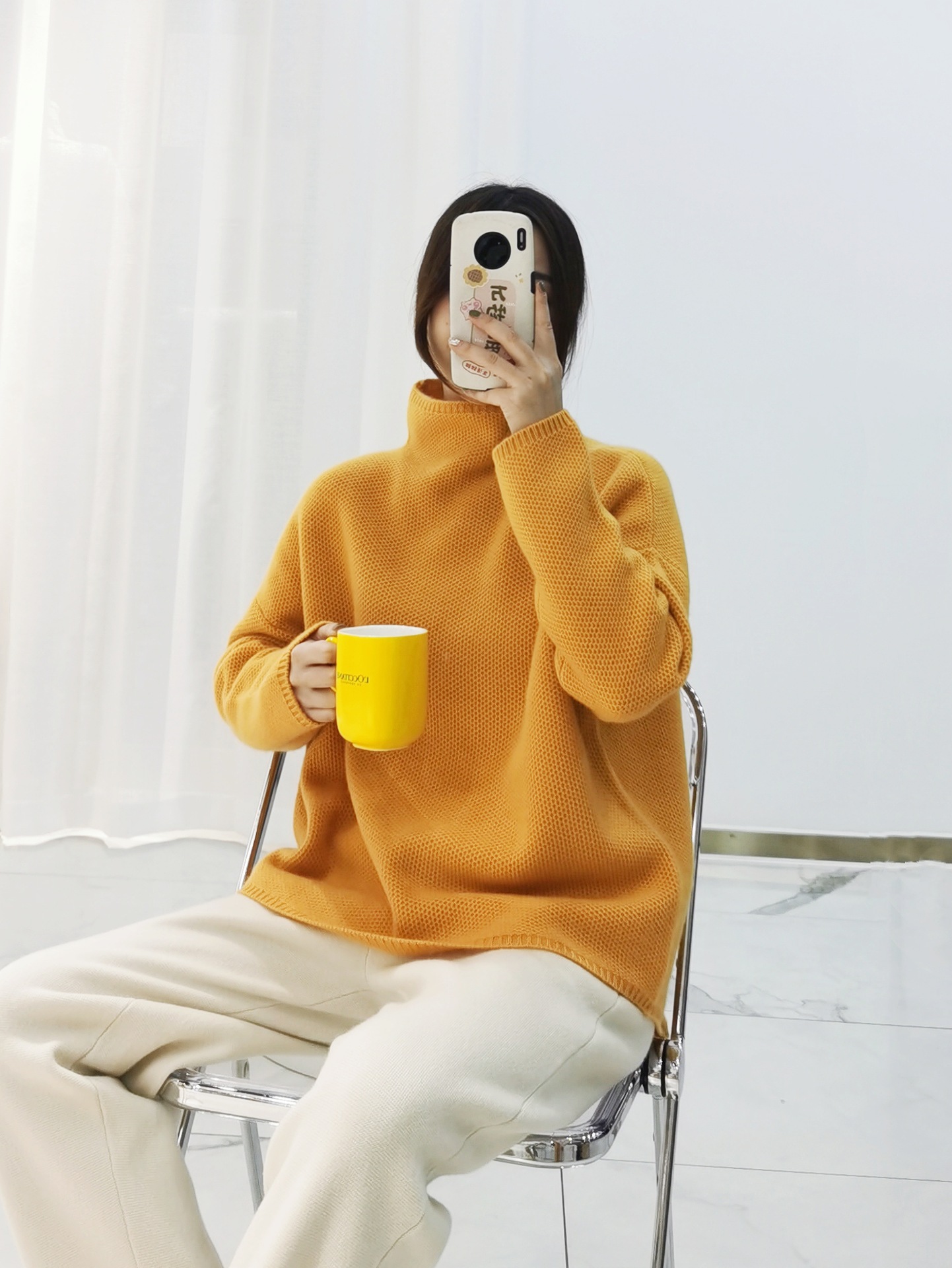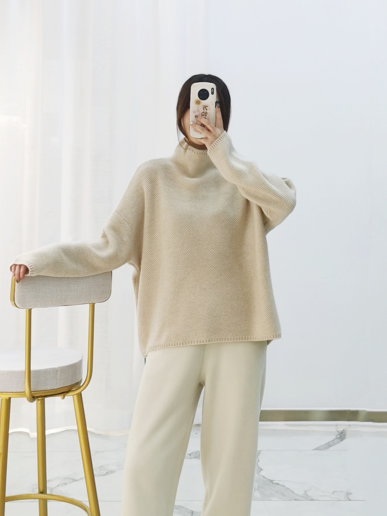 New Style Pure Cashmere High Collar Loose Knitted Sweater for Women