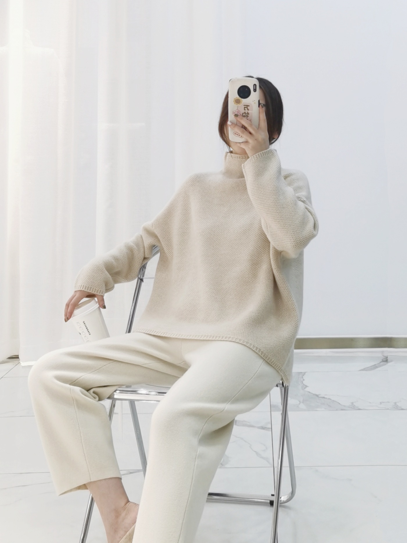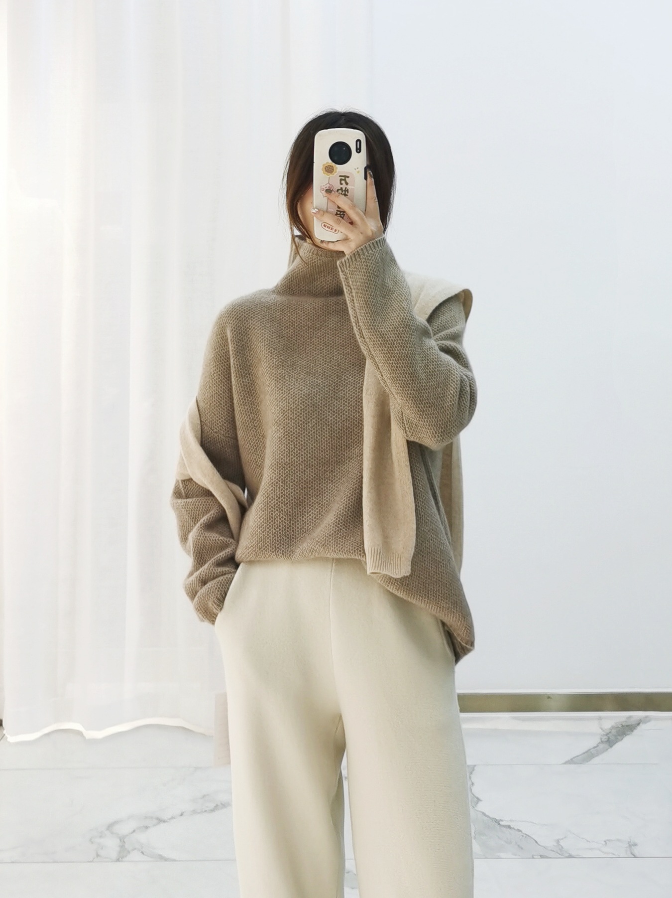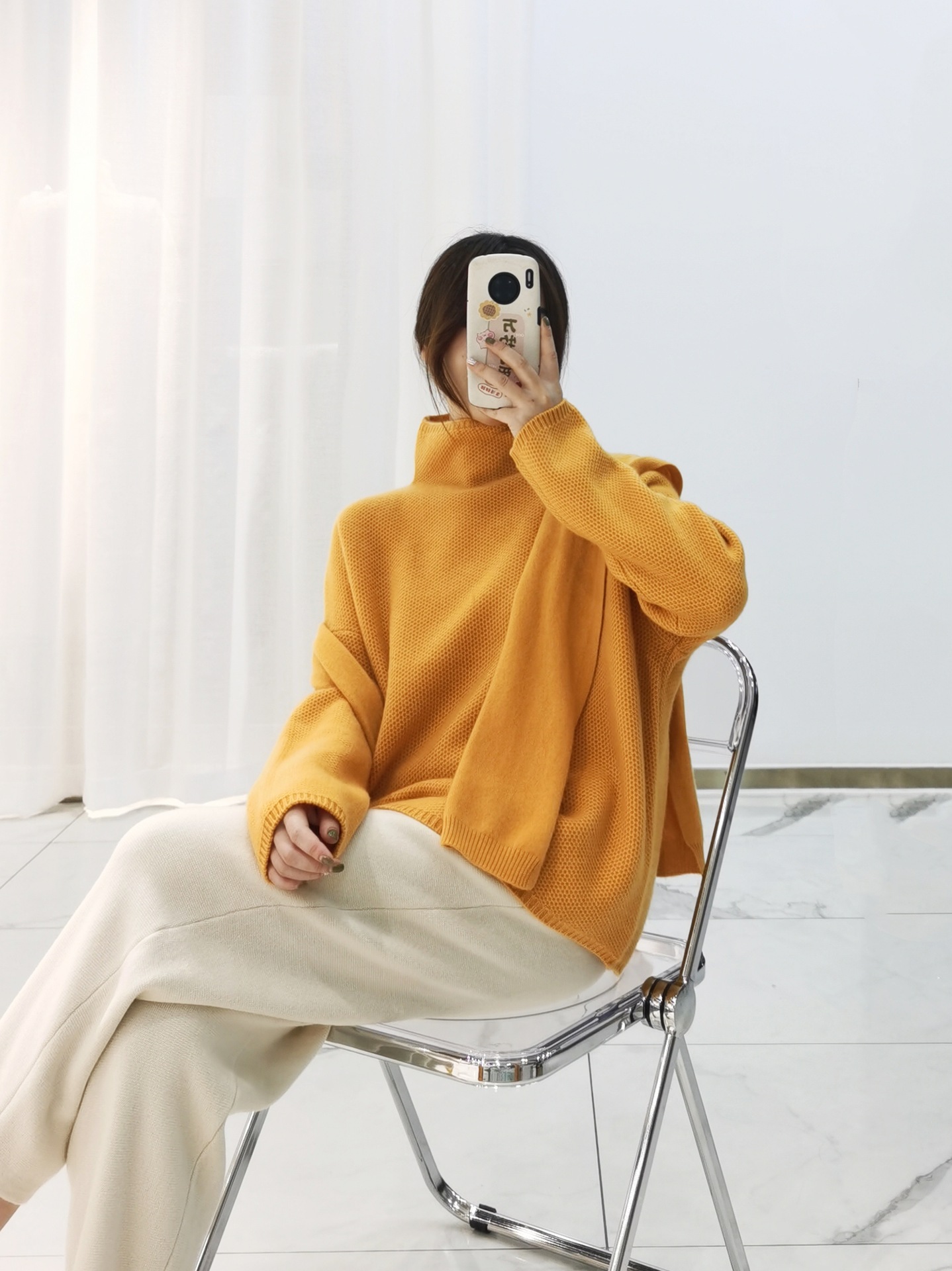 New Style Pure Cashmere High Collar Loose Knitted Sweater for Women