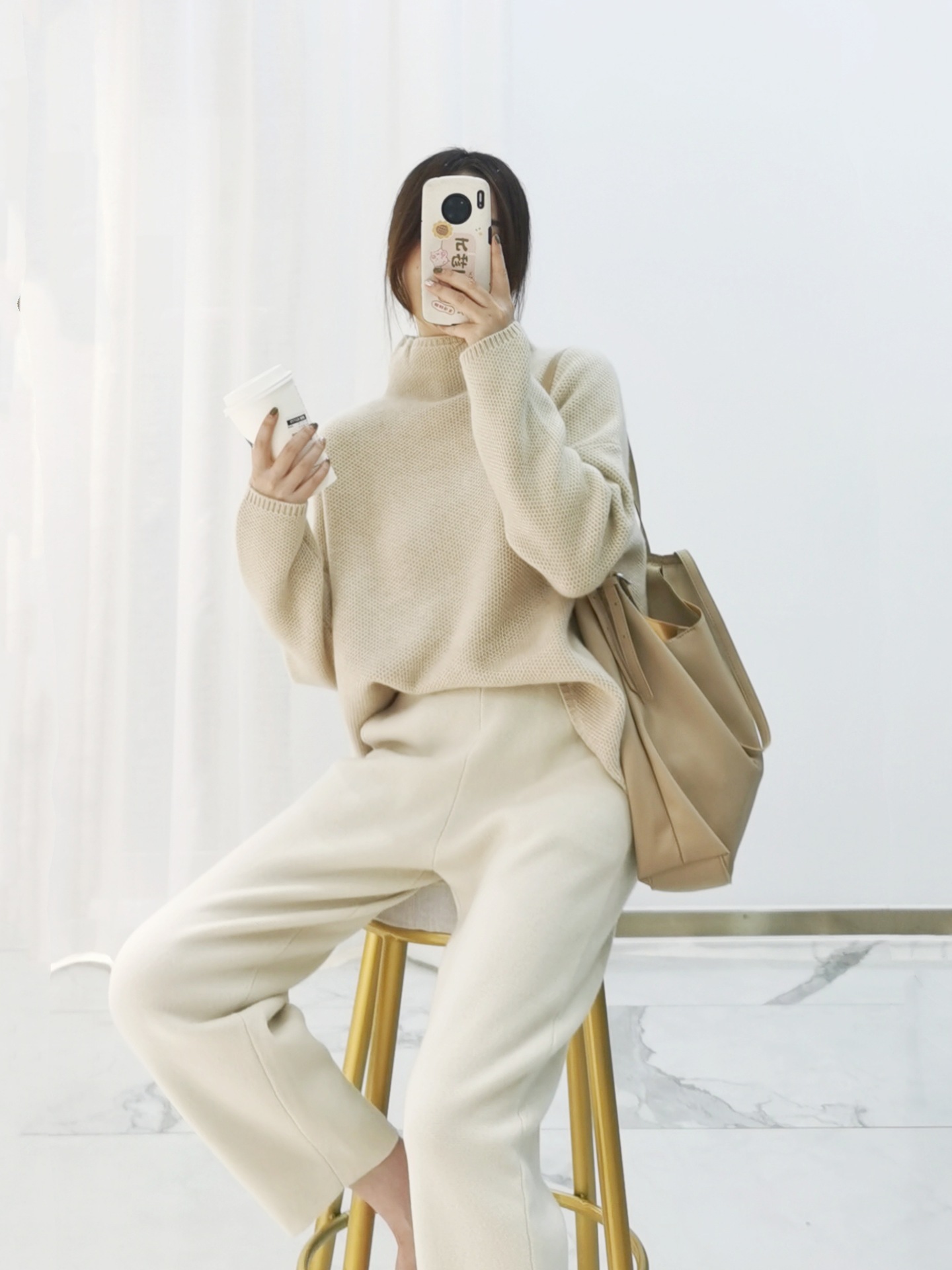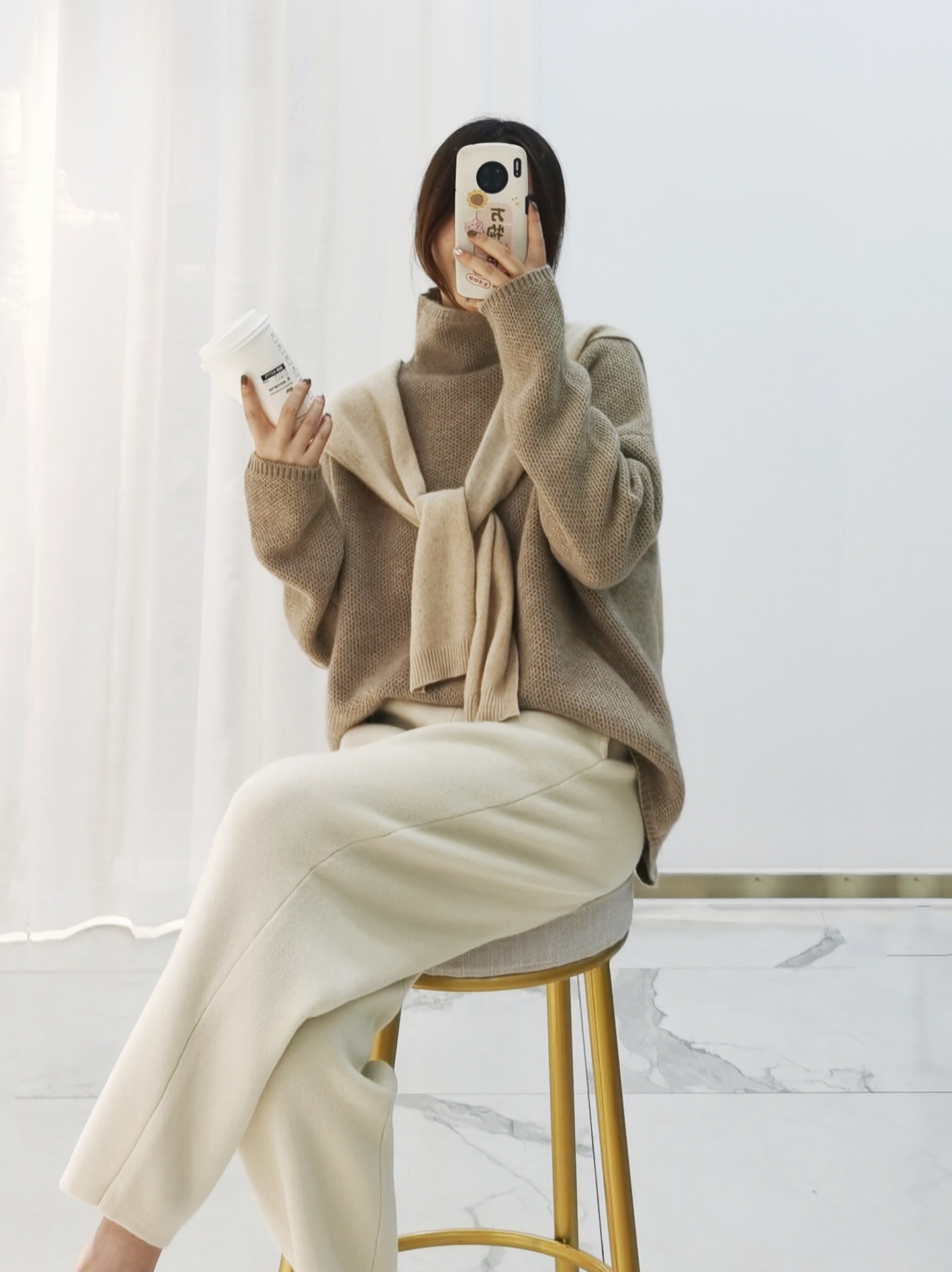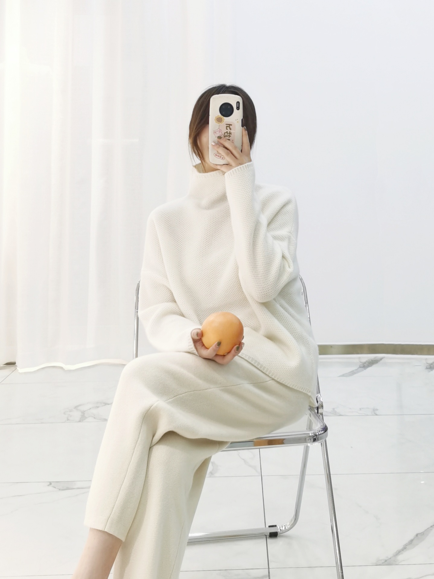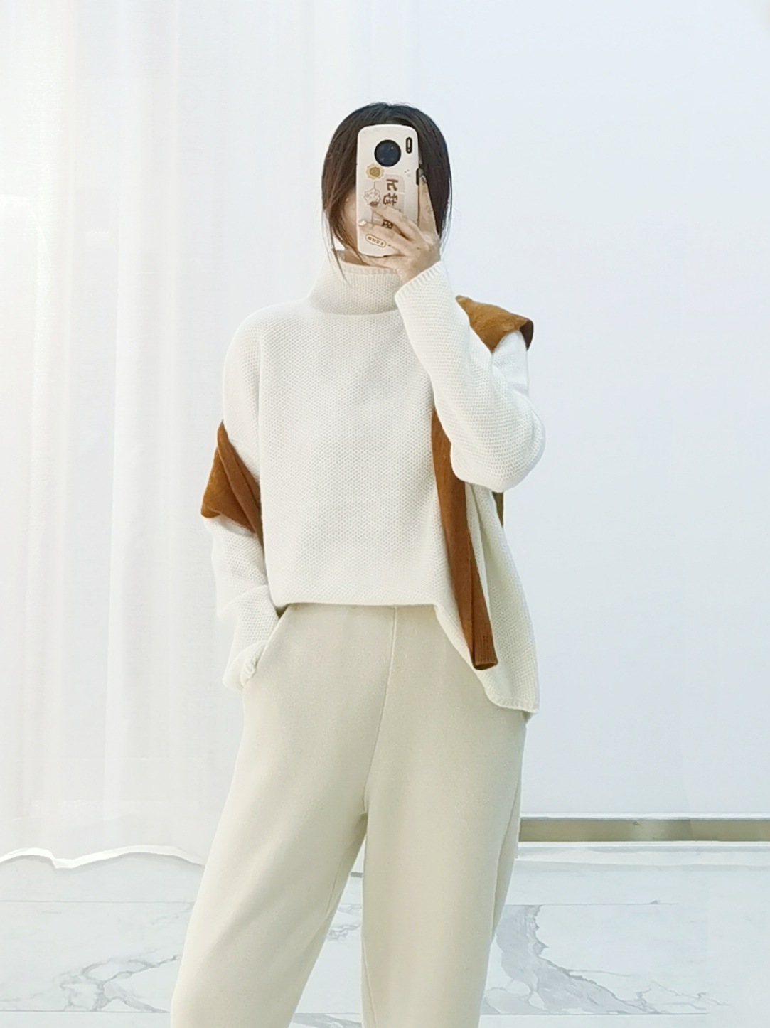 New Style Pure Cashmere High Collar Loose Knitted Sweater for Women